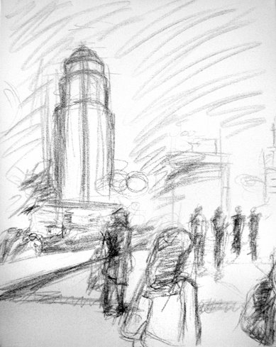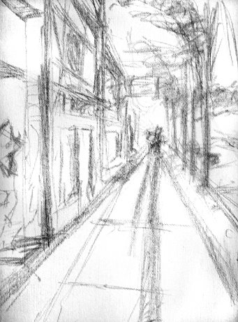Here’s the preliminary sketch. I’ve gone straight to canvas (which is usually how I do it) and plan to start laying down colors tonight.