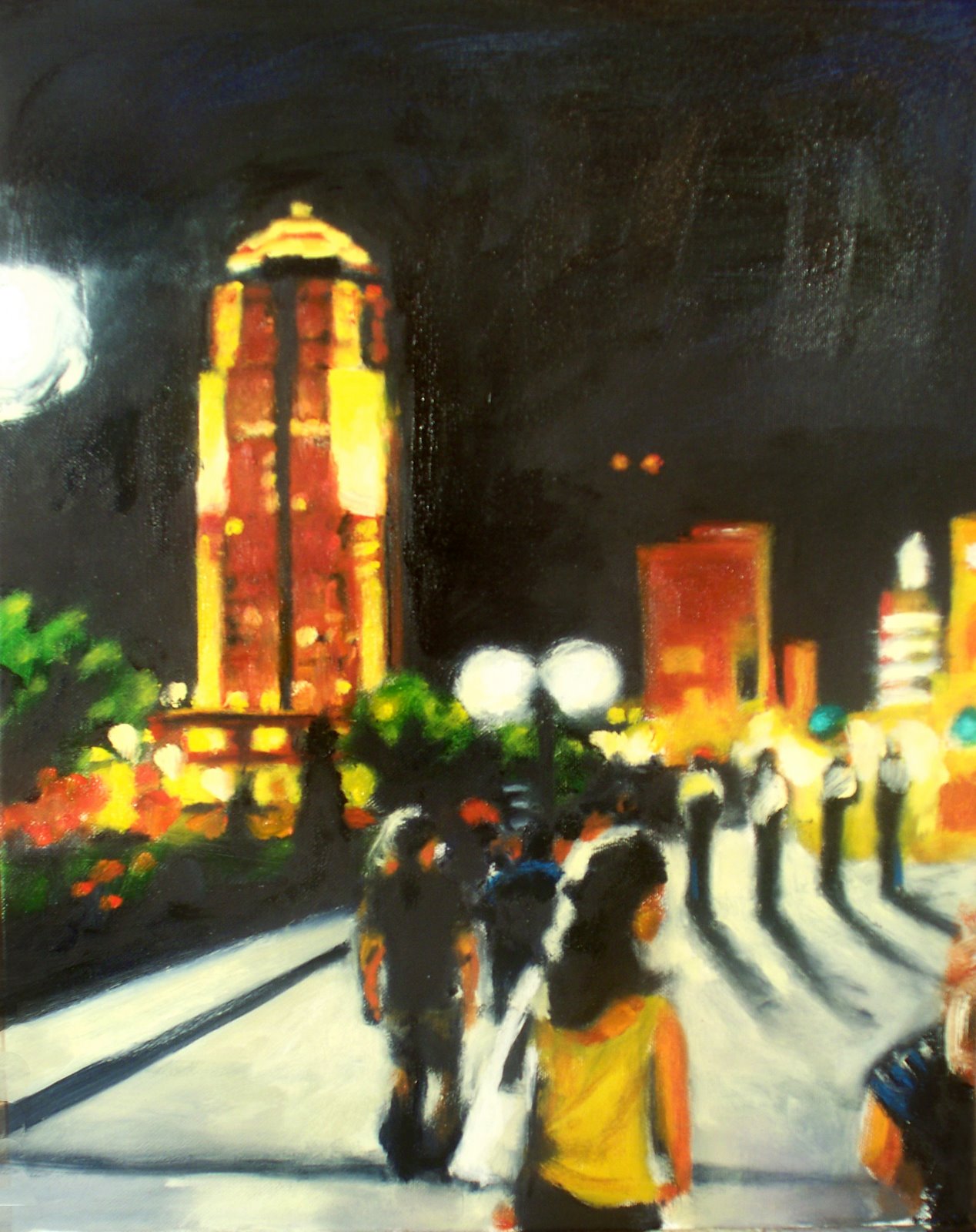 I’m feeling like the only things left to do are paint the sides of the canvas and do a little detail cleaning. Once that’s done (hopefully tonight) I’ll put this one up on my Etsy account for sale at a fraction of the gallery cost. If there are no lookers by Friday night the piece will be taken in to be scanned and then delivered to one of the galleries where my work is currently on display.