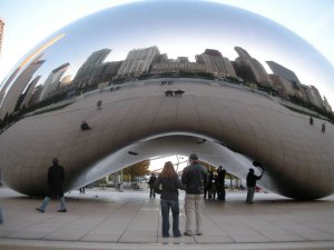 I did decided to spend tonight working on some ideas for a commissioned piece. I hooked up witht the client through work. He’s had to live in a number of different countries and has this great piece of Sydney. I’ve been toying with the idea of how to combine the various iconic elements of Chicago into one piece (which is what he’s asking for). I’ve got this great picture of The Bean with this couple standing in front of it and the skyline reflected on it’s perfect surface. I’m thinking I could work those iconic images (Millenium Park, the Sears Tower, Wrigley, etc) into that reflection. I’ve thrown the idea out there. We’ll see what he says. Hopefully he’ll like the idea. So in the interest of getting something done I’ll sign off.
