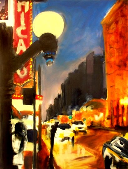 I got some good stuff done on my new, large-format piece. I’m very happy with the way it’s coming along. The street’s really starting to glow of its own accord. The cars are materializing out of the negative space which makes me pretty happy. Stay tuned. I’m pretty excited to see how this one turns out.