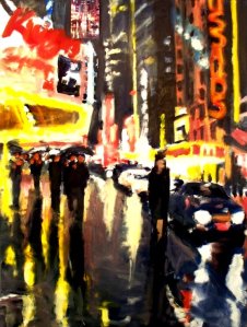 Not much philosophizing today… I made some pretty big adjustments to the latest painting. I’m trying to unify the sky and sidewalk while keeping a loose feeling in the brushwork. Hoping to get back to it tonight. We’ll see if the Universe goes along with me.