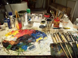 Meet my palette (top). It’s heavy with paint and more than a little worn. Broken in like a pair of good shoes.